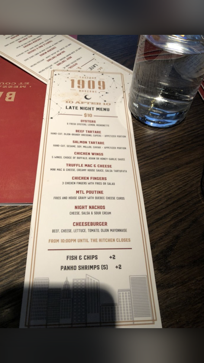 Explore the Delicious Menu at 1909 Taverne Moderne